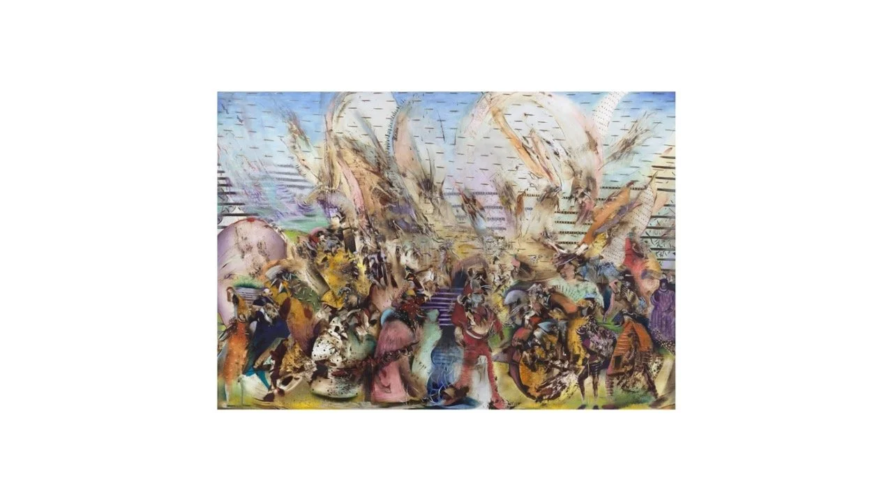 Known for his dynamic, large-scale canvases, Banisadr’s work feels like stepping into a storm of colour and form. His paintings, often influenced by his memories of Iran and his interest in history, literature, and sound, are frenetic yet masterfully controlled.